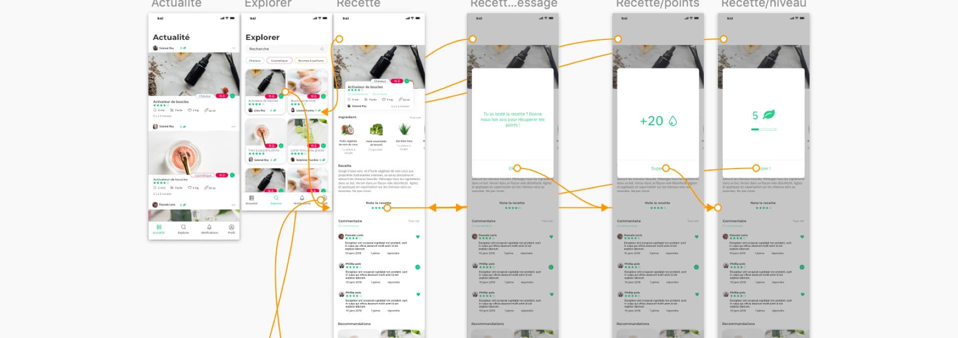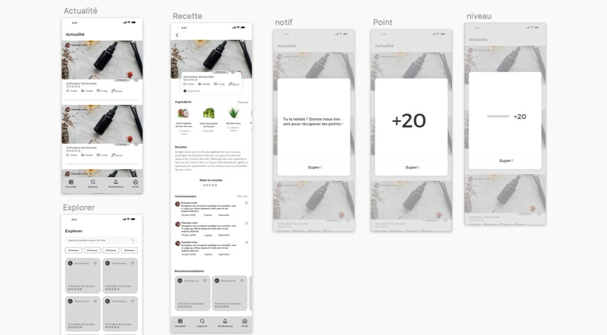 Afin de motiver les utilisateurs et de créer du partage, l’application devait reprendre les codes des réseaux sociaux. Ainsi reprendre les pages de profil, de fil d’actualité, de recherche, de gains et de commentaire sont innévitables.
