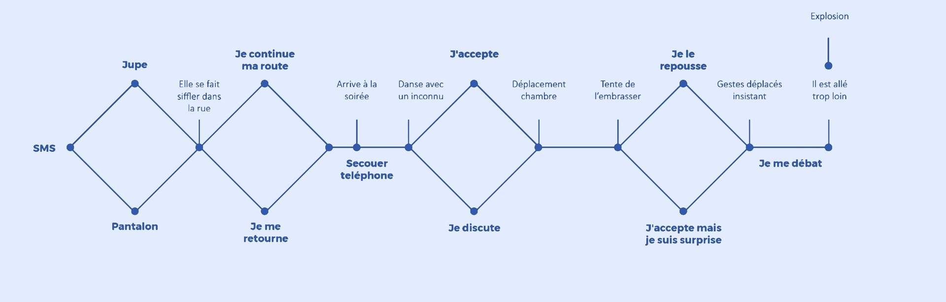 Pour concevoir ce projet, nous avons d’abord conçu le scénario grâce à divers témoignages mais aussi par nos expériences personnelles.