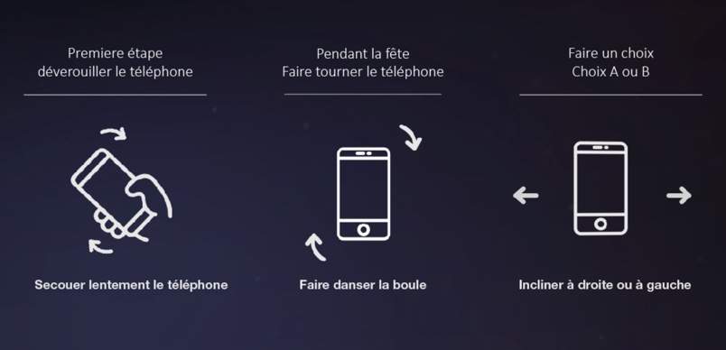 Par la suite nous nous sommes intéressées aux diverses intéractions que devra effectuer l’utilisateur grâce à une tablette. Pour les rendre compréhensibles nous avons indiqué leur manipulation grâce à une série d’animation intégrée dans le scénario. De plus nous avons expérimenté plusieurs sphères sur processing afin que l’utilisateur puisse s’identifier et ressentir au mieux les émotions. Pour rendre l’installation plus immersive nous nous sommes occupées de mettre divers sons mais aussi un fond très épuré qui évolue en fonction de l’histoire.