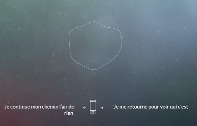Dans cette serious game le spectateur incarne une victime qui est représentée par une sphère variant en fonction des ces émotions. Il va devoir interagir et choisir des actions qui vont affecter la suite de l’histoire.